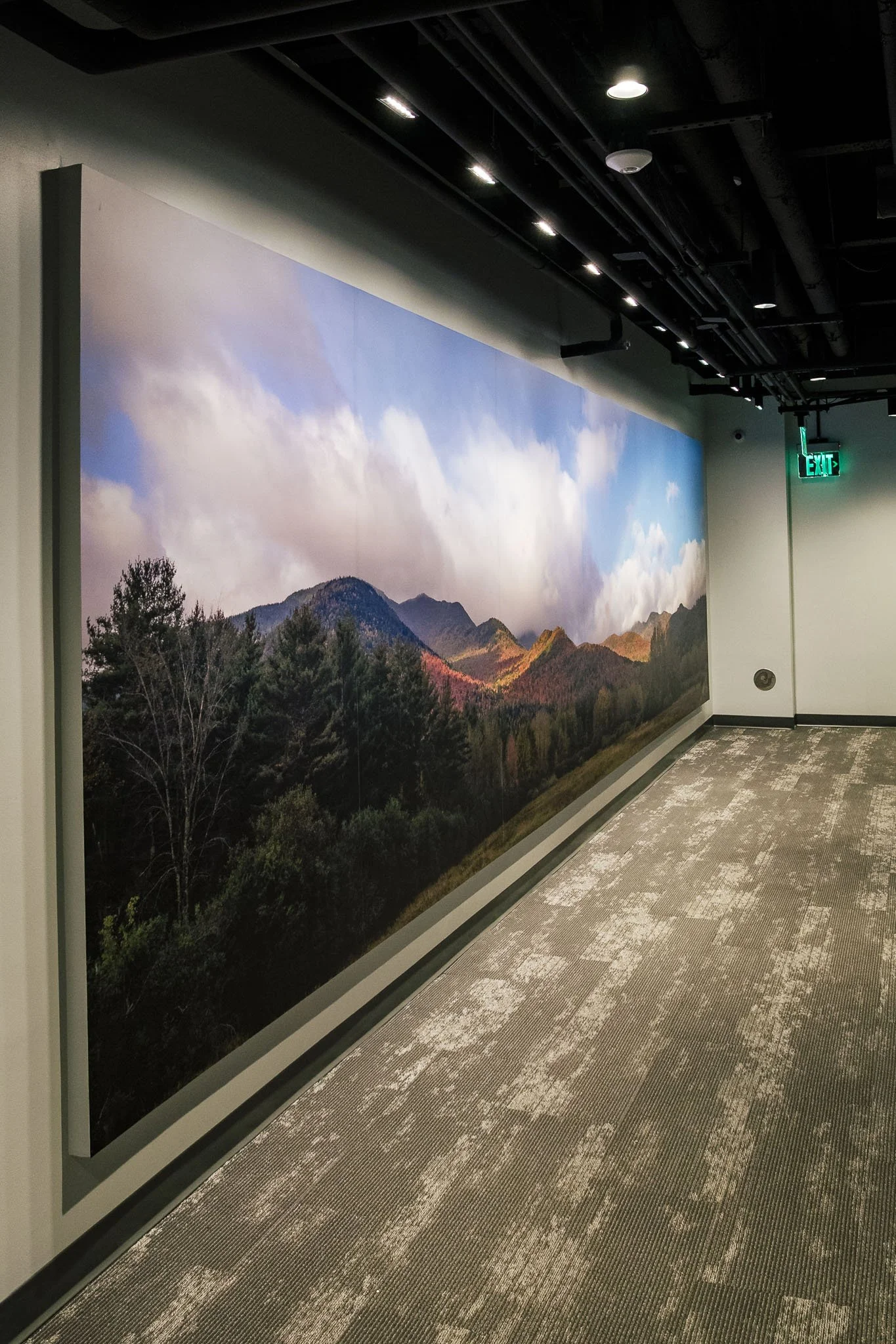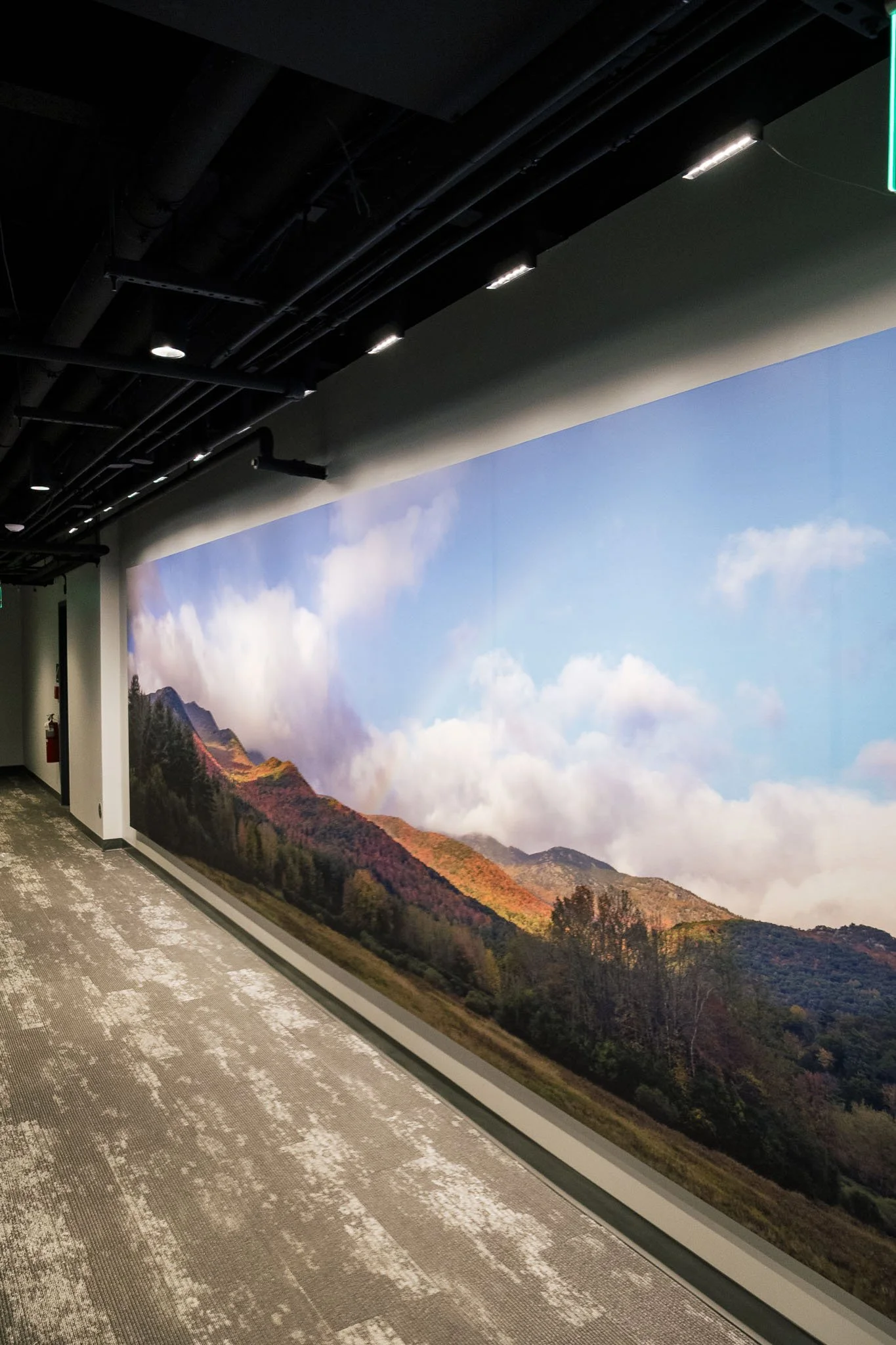 In the Fall of 2023, I collaborated with Sensory Six Interiors to produce two custom, large-scale landscape images for a commercial basement fitness center in Upstate New York.